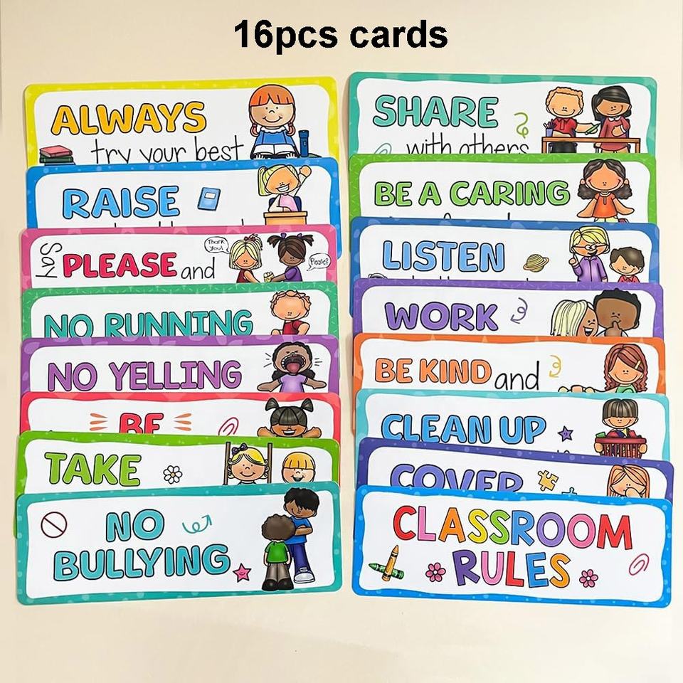 16ชิ้นแฟลชการ์ดเพื่อการเรียนรู้คำศัพท์ภาษาอังกฤษสำหรับเด็กก่อนวัยเรียนกฎการเรียนของเด็กวัยหัดเดินกระดานข่าวการเรียนการสอนการสอนชุดแฟลชการ์ด