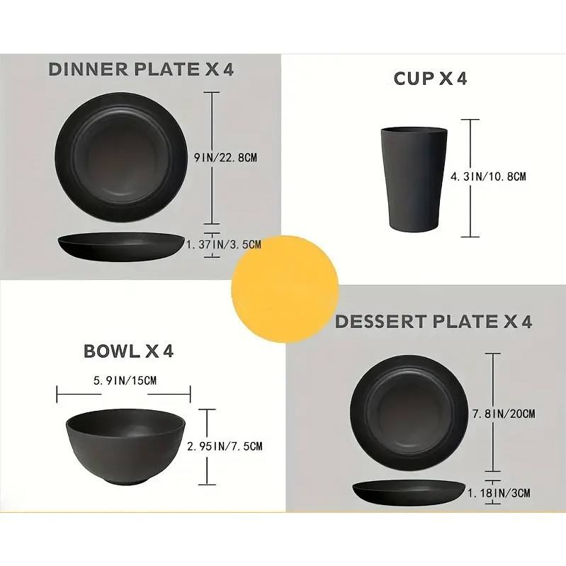 ชื่อผลิตภัณฑ์:ชุดภาชนะอาหาร16ชิ้นทำจากฟางข้าวสาลี