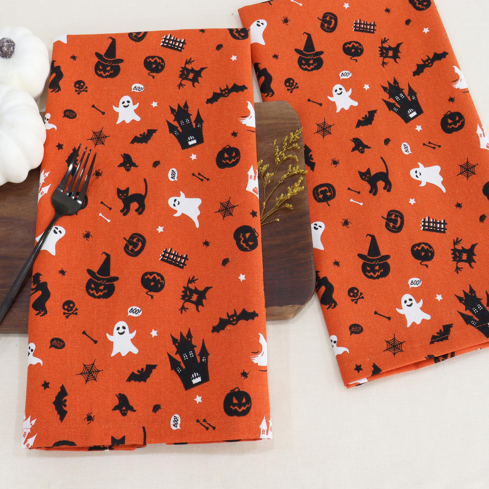 ผ้าขนหนู100% สำหรับห้องครัวดีไซน์ลายบ้านผีสิงแนวฮาโลวีนใช้ซ้ำได้ผ้าซับน้ำสำหรับทำความสะอาดและอบแห้งจาน