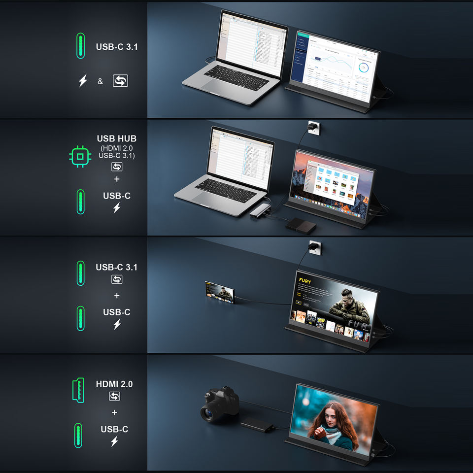 จอมอนิเตอร์แบบพกพา17นิ้ว17.3นิ้วสำหรับโทรศัพท์มือถือจอแสดงผลแบบหนึ่งเส้น4K หน้าจอมอนิเตอร์แบบพกพา