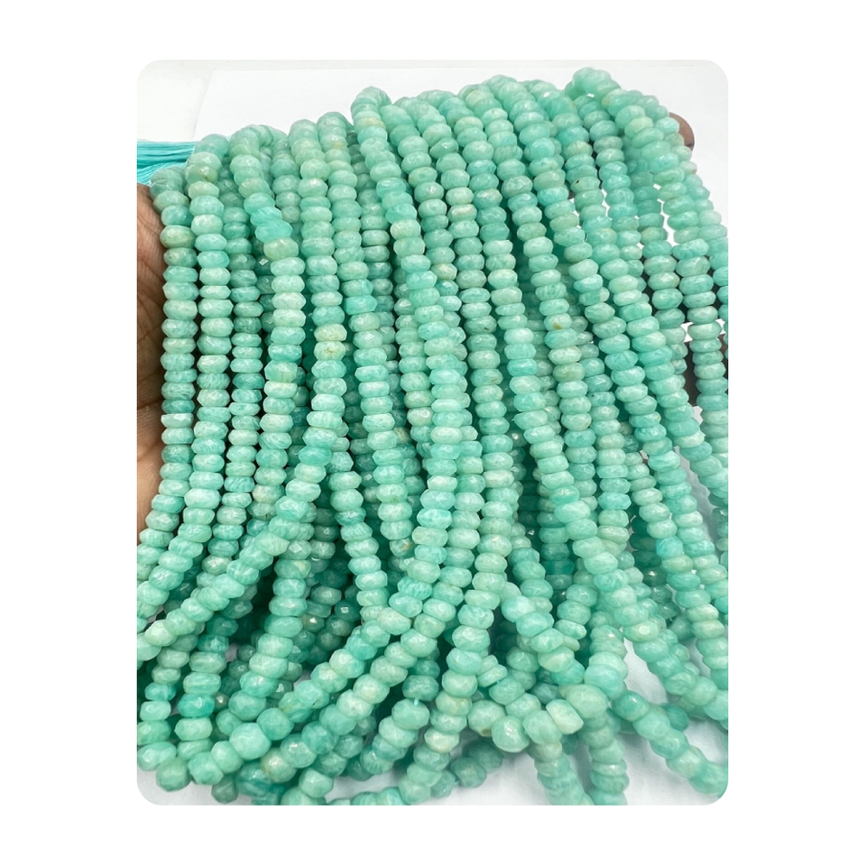 ลูกปัดอะมาโซไนต์ธรรมชาติขนาด17นิ้วแบบเหลี่ยมเพชรพลอยหลวมสีขาว4ถึง5มม.