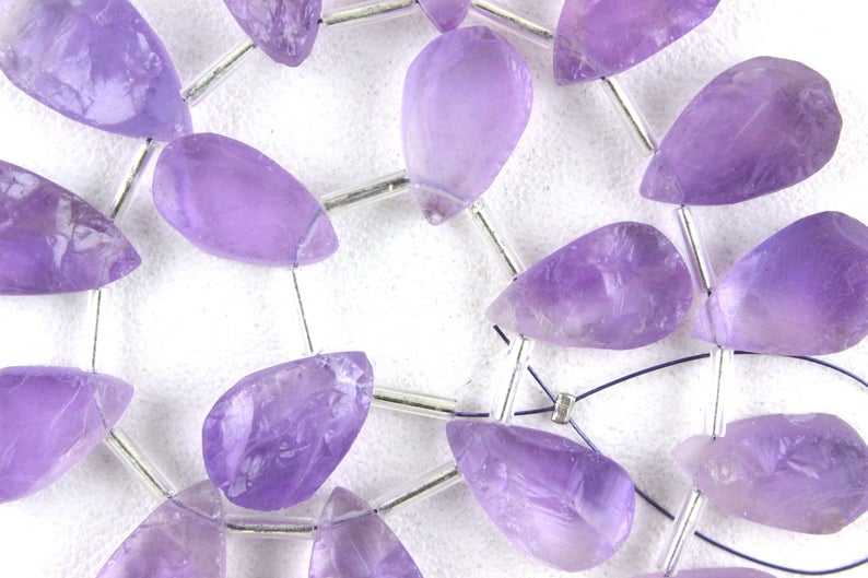 พลอยอเมทิสต์พลอยหยาบธรรมชาติ17ชิ้นทรงลูกแพร์ไม่ผ่านการเจียระไนด้วยมือของแท้คุณภาพสูง