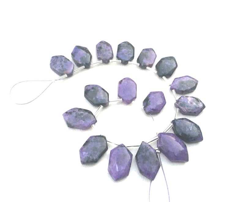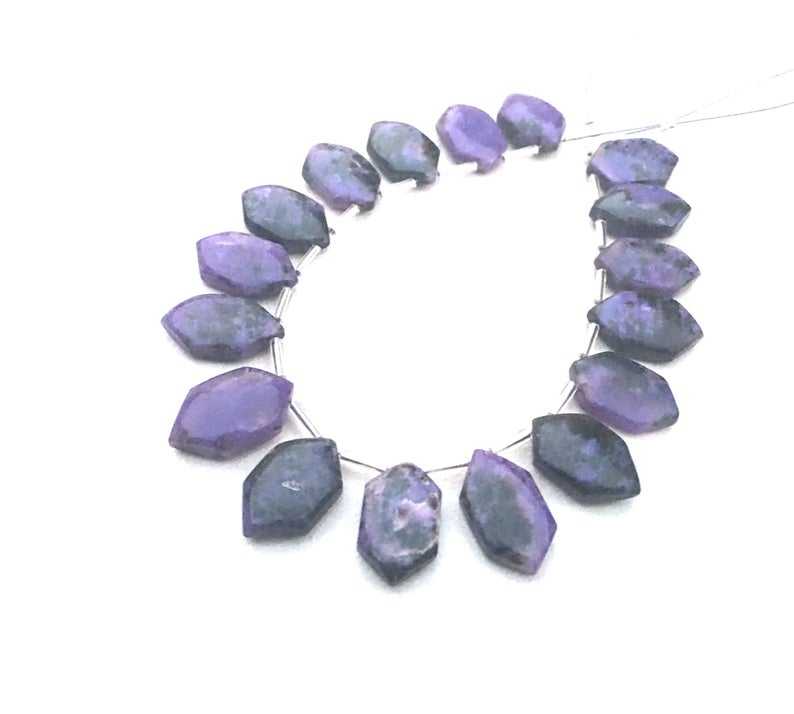 17ชิ้นธรรมชาติ Charoite พลอยออกแบบรูปร่างเรียบ Briolette เครื่องประดับสร้อยข้อมือสร้อยคอต่างหูหินลูกปัด