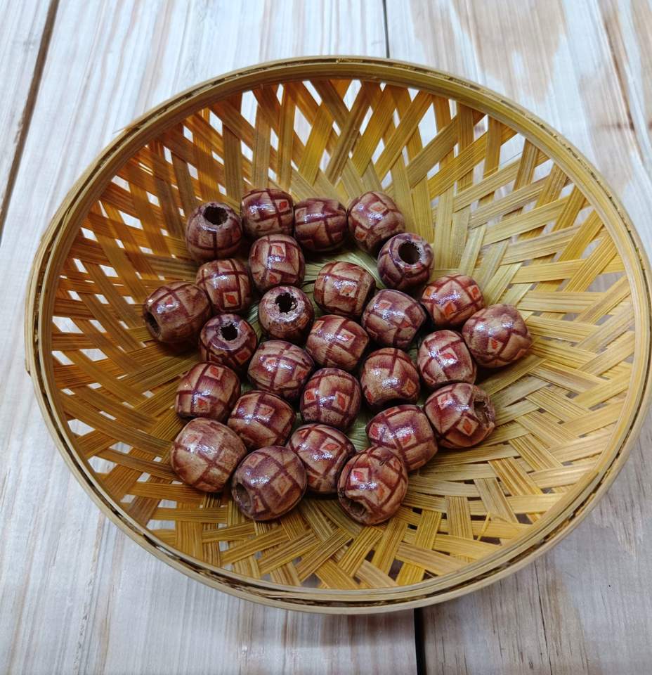 ลูกปัดพิมพ์ลายขนาด17มม. 2เม็ดทำจากไม้รูปร่างและสีแบบกำหนดเองสินค้าอินเดีย