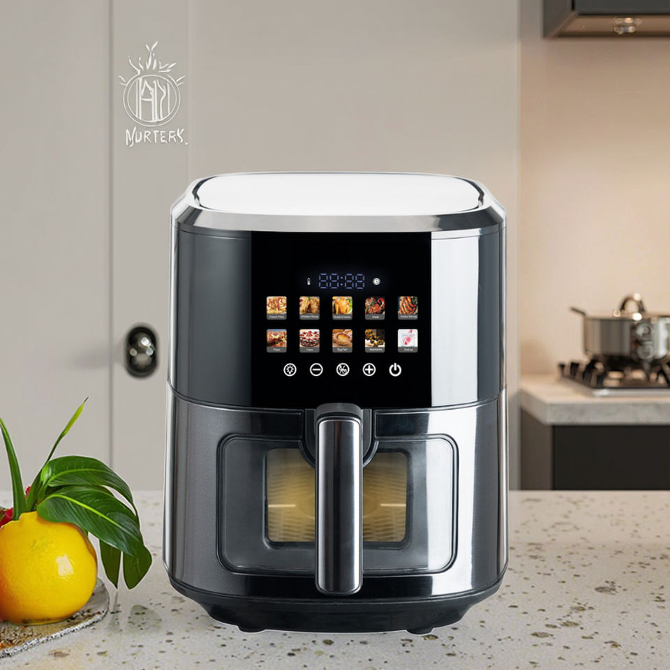 หม้อทอดไร้น้ำมันสแตนเลสสีเทาพร้อมหน้าต่างที่สามารถมองเห็นได้1700W 6.5L OEM ดีไซน์ใหม่