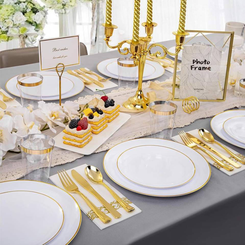 ชุดช้อนส้อมแบบใช้แล้วทิ้งสำหรับงานแต่งงานขอบทองจัดเลี้ยง175ชิ้น