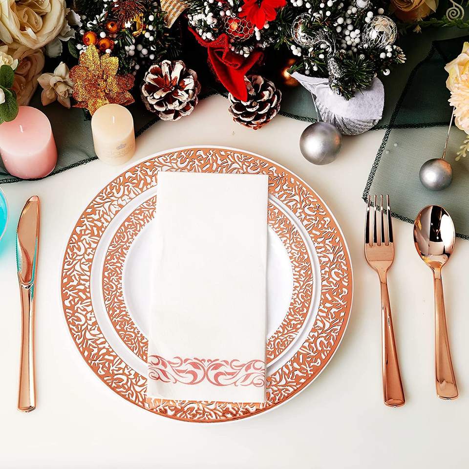 10.25 "จาน + 7.5" จาน + มีด + ส้อม + ช้อน + ผ้าเช็ดปาก + ถ้วย9ออนซ์