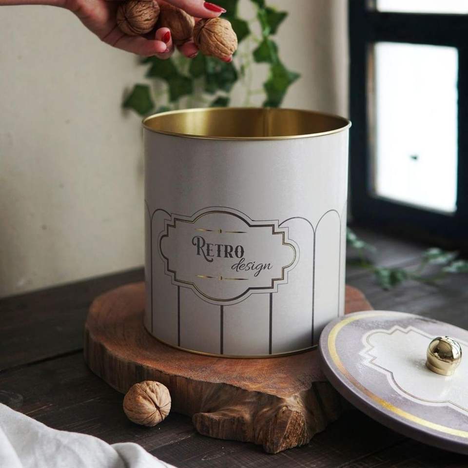 ขวดและขวดโหลโลหะทรงกลมแบบย้อนยุคขนาด175x180มม. มีที่จับ