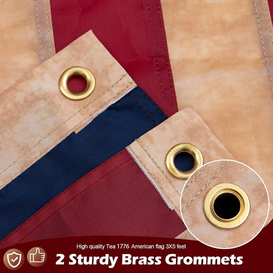 ธงเบ็ตซี รอสส์ ปี 1776 ขนาด 3x5 ฟุต ปักลายสีชา 13 ดาว สไตล์วินเทจ ฉลองครบรอบ 250 ปี สำหรับใช้งานกลางแจ้ง พร้อมห่วงทองเหลือง 2 จุด ทำจากโพลีเอสเตอร์
