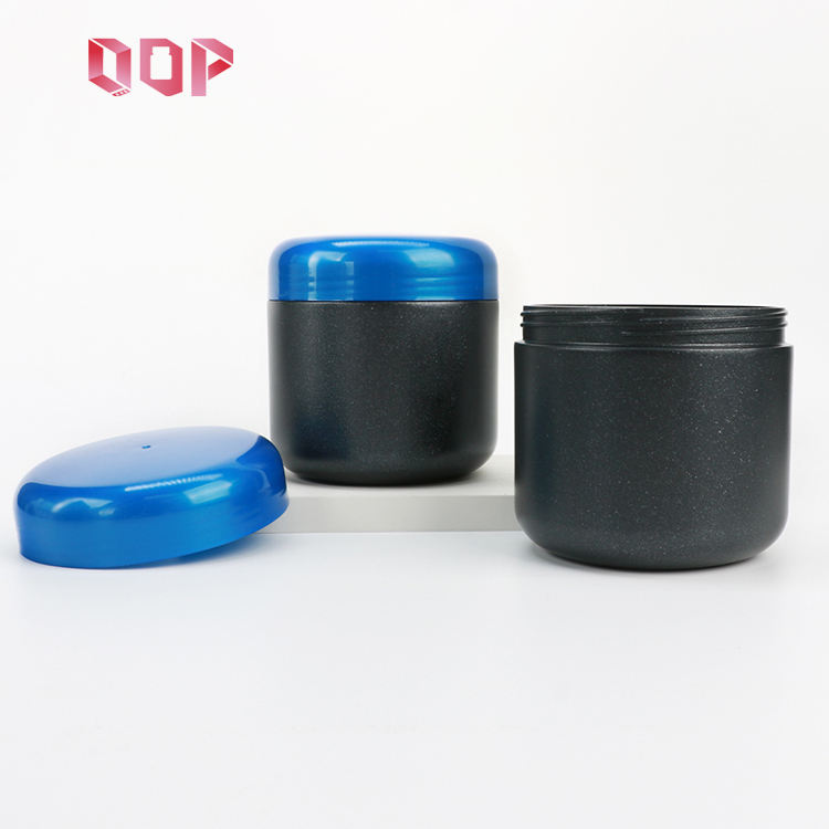 ขวดบรรจุภัณฑ์เครื่องสำอาง HDPE สีดำแบบกำหนดเอง ขนาด 17 ออนซ์ 25 ออนซ์ 28 ออนซ์ ฝาสีน้ำเงิน สำหรับใส่มาส์กผม ครีมบำรุงผิว โปรตีนผง ราคาโรงงาน