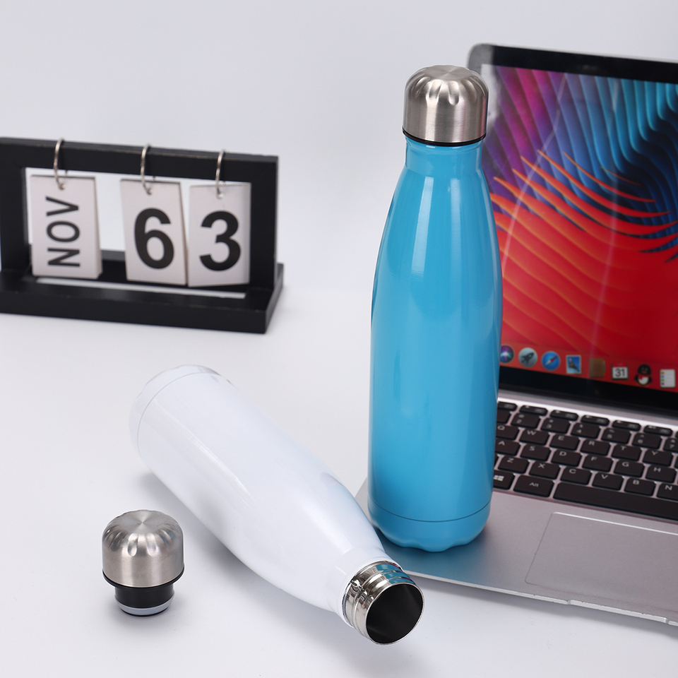 แก้วเก็บความร้อนสแตนเลสขนาด500มล. ดีไซน์คลาสสิกกระติกน้ำสุญญากาศสองชั้นแบบด้ามจับขวดเก็บความร้อนสำหรับเป็นของขวัญทางธุรกิจ