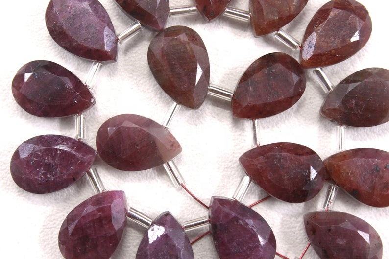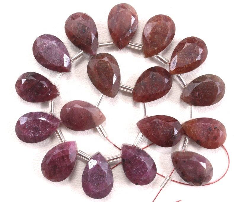 17ชิ้นลูกปัด Briolette ทรงลูกแพร์พลอยทับทิมแดงธรรมชาติสำหรับทำเครื่องประดับของแท้ขายส่ง