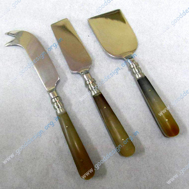 ชุดเครื่องมือชีสด้ามจับแตรทำจากสเตนเลสธรรมชาติ04ชิ้น