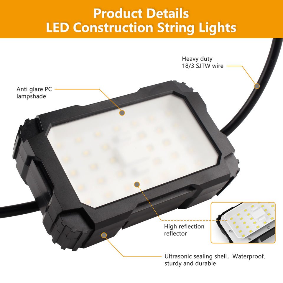 100FT sjtw 180W 19800 Lumen ETL จดทะเบียนไฟ LED ทำงานสายไฟส่องสว่างชั่วคราวสำหรับไซต์ก่อสร้างโรงจอดรถ