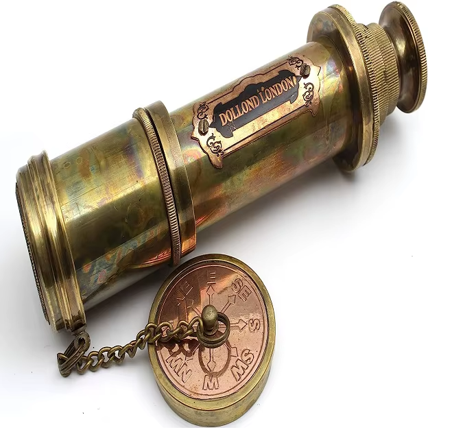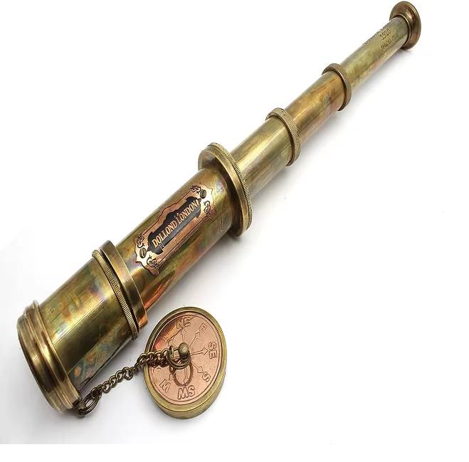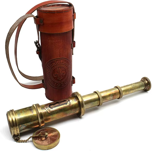 กล้องส่องทางไกลขนาดเล็กทำจากทองเหลืองโบราณขนาด18นิ้วพร้อมขาตั้งทำจากไม้สำหรับใส่แว่นทำมือใส่ในกล่องหนังกล้องโทรทรรศน์ขนาดเล็ก