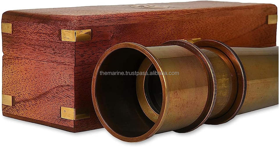 กล้องส่องทางไกลแบบโบราณขนาด 18 นิ้ว ทำจากทองเหลือง สำหรับโจรสลัด พร้อมกล่องไม้ เหมาะสำหรับการผจญภัยและการตกแต่ง
