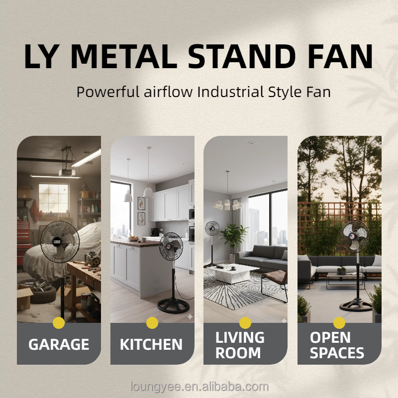พัดลมโลหะ18นิ้วประสิทธิภาพลมแรงและฐานที่มั่นคงสำหรับการทำความเย็นในคลังสินค้าหรือสำนักงาน