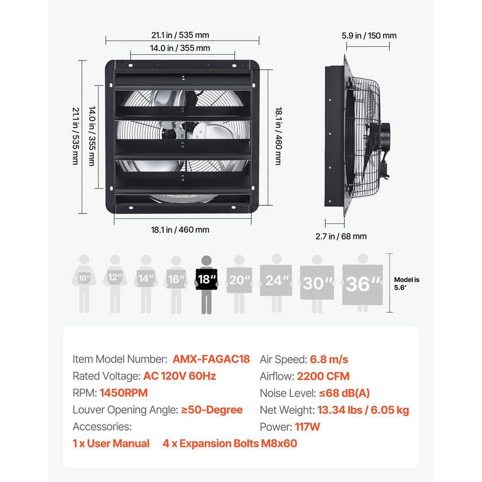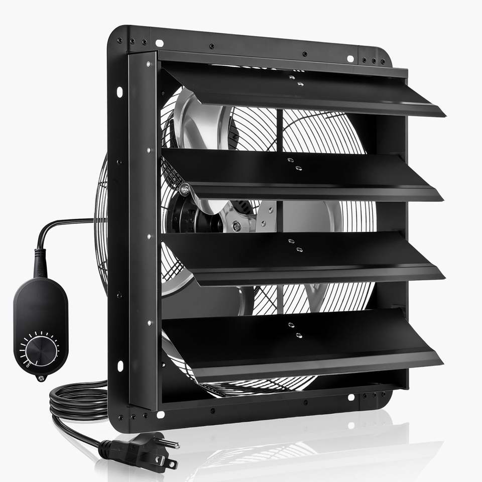 พัดลมดูดอากาศขนาด 18 นิ้ว พร้อมตัวควบคุมความเร็วแบบปรับได้ ติดผนังสำหรับระบายอากาศในห้องใต้หลังคา 2200 CFM มอเตอร์ AC โครงเหล็กแข็งแรงทนทาน