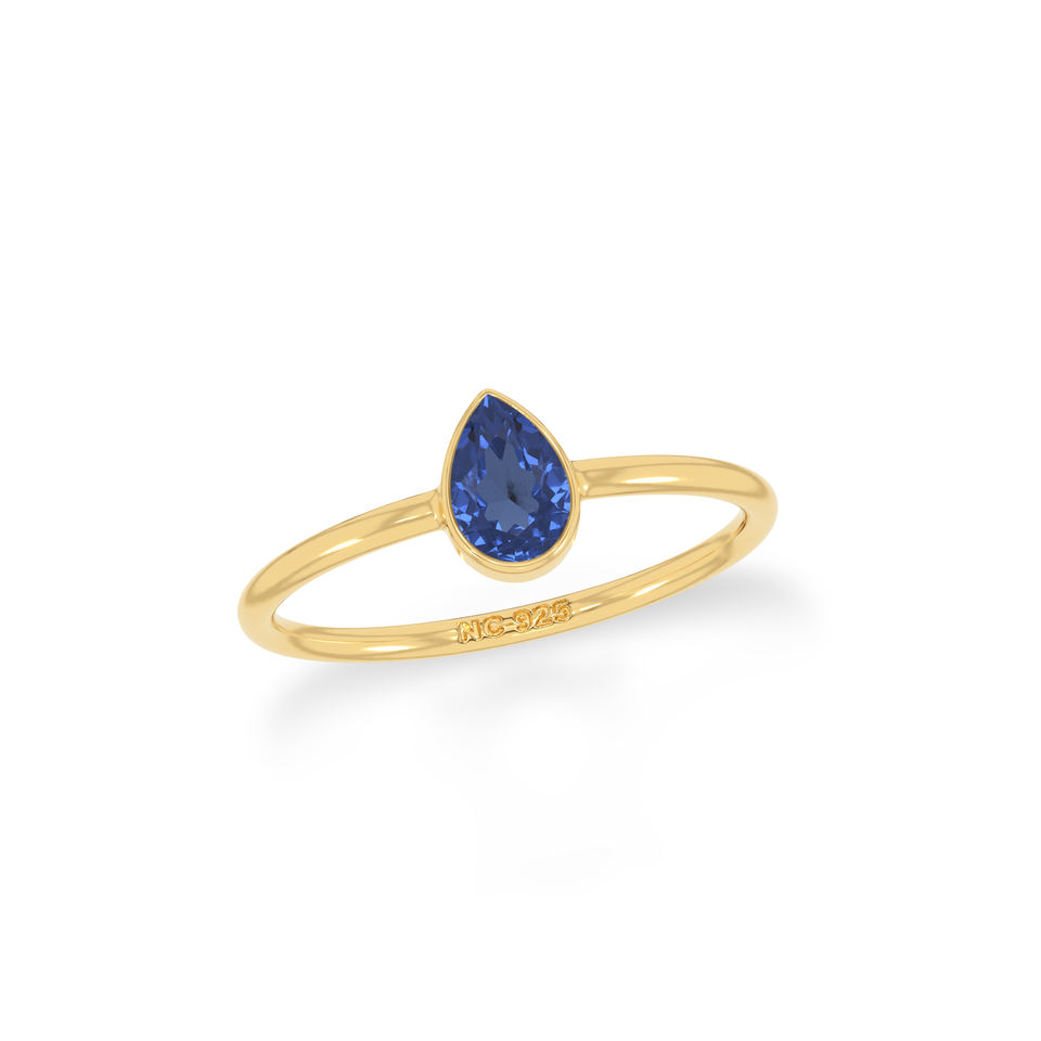 18K Gold Plated Natural Kyanite Bezel Setting Handmade Minimalist Designer Ring-Gift Her Party Stackable Ring