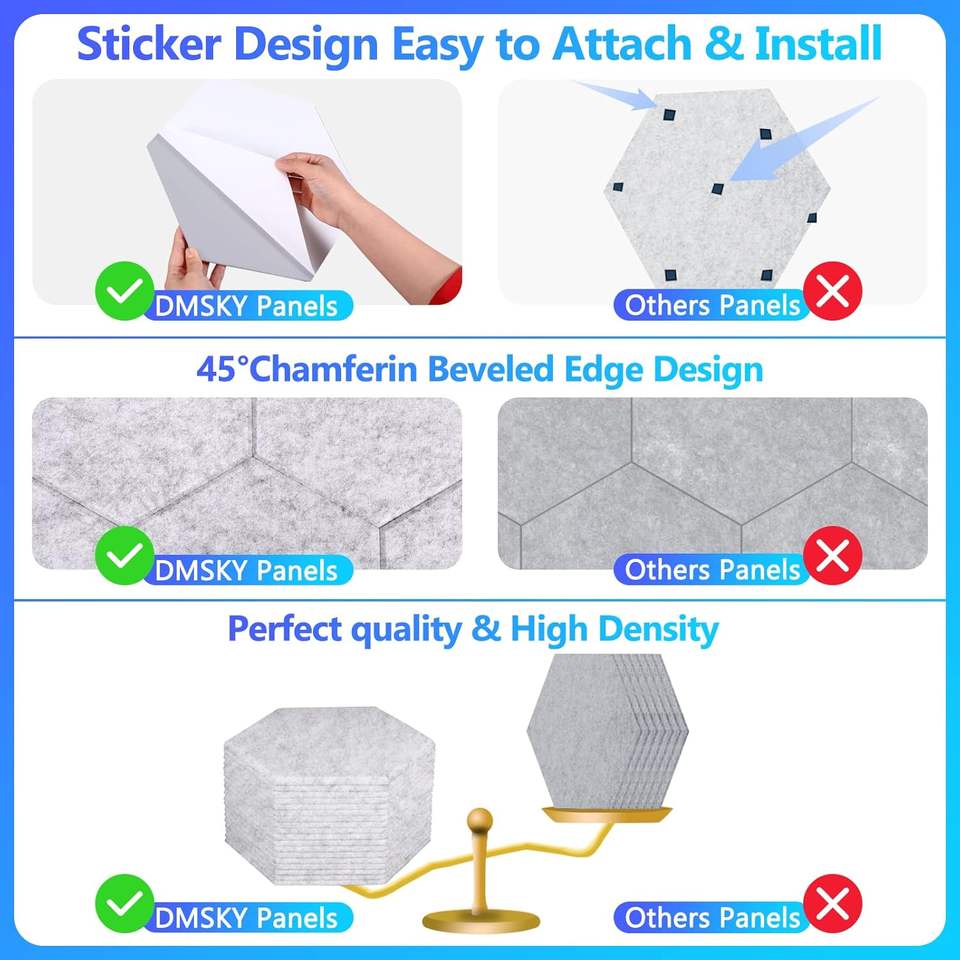 18แพ็ค12 "x 10" x 0.4 "แผงอะคูสติกหกเหลี่ยมความหนาแน่นสูงแผ่นดูดซับเสียงและกันเสียงสำหรับคลังสินค้าในบ้าน