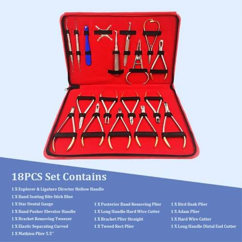 ชุดเครื่องมือผ่าตัดถอนฟันด้วยมือ 18 ชิ้น ทำจากสแตนเลส คีมจัดฟัน อุปกรณ์จัดฟัน ชุดอุปกรณ์สำหรับทันตแพทย์