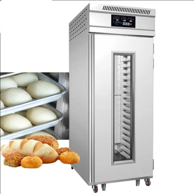 ตู้หมักขนมปังสแตนเลสสำหรับใช้ในเชิงพาณิชย์18ถาดตู้หมักแช่เย็นร้านอาหารเบเกอรี่เรือกลไฟหมัก