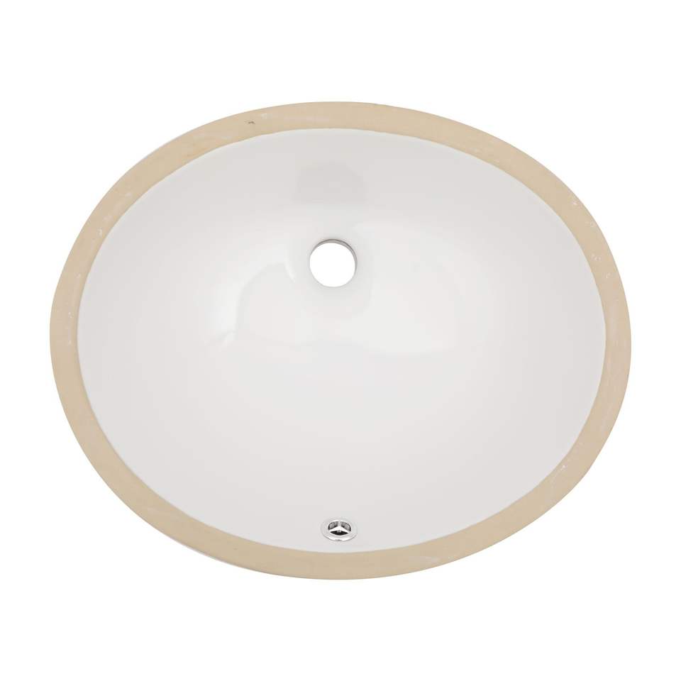 18 \ "X15 \" อ่างล้างจานเซรามิกสีขาวทรงวงรีมีรูระบายน้ำล้น