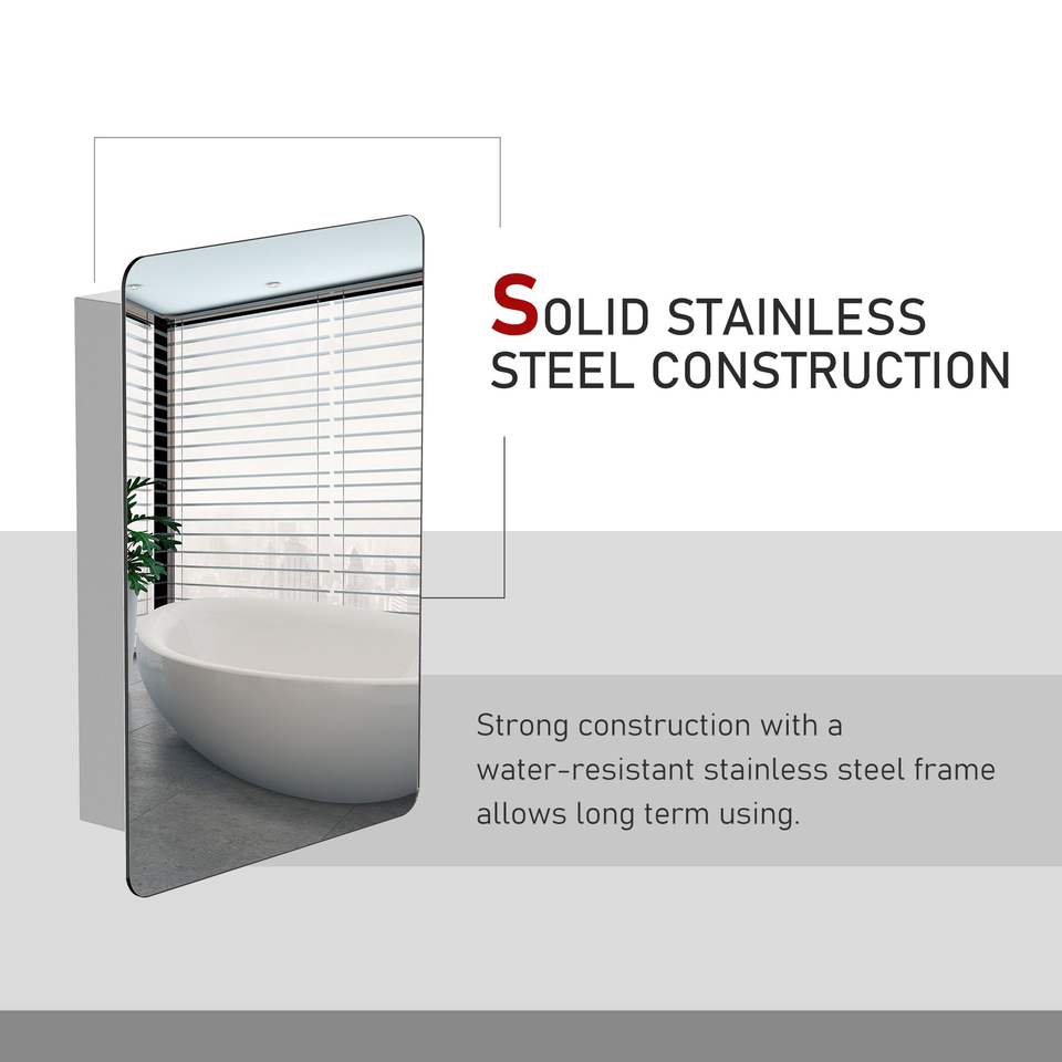 18\"x26\" Stainless Steel Medicine Cabinet 3-Tier Wall Organizer Sliding Door Mirrored Bath Mirror 3-Tier Shelf Sliding Door