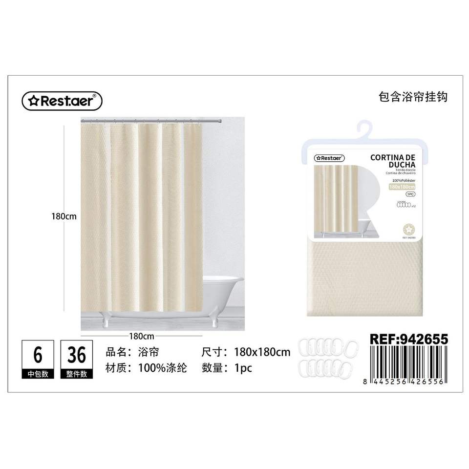 ม่านอาบน้ำลายนูนหรูหรา3D ขนาด180*180ซม. ดีไซน์ทันสมัยพิมพ์ลาย PVC ตะขอโพลีเอสเตอร์สำหรับโรงแรม