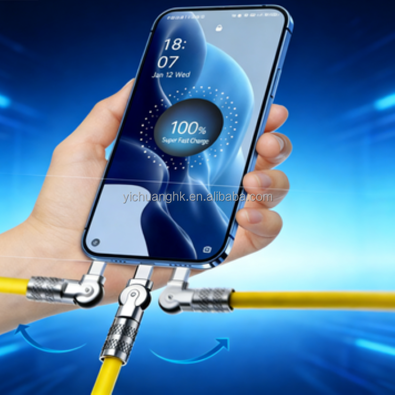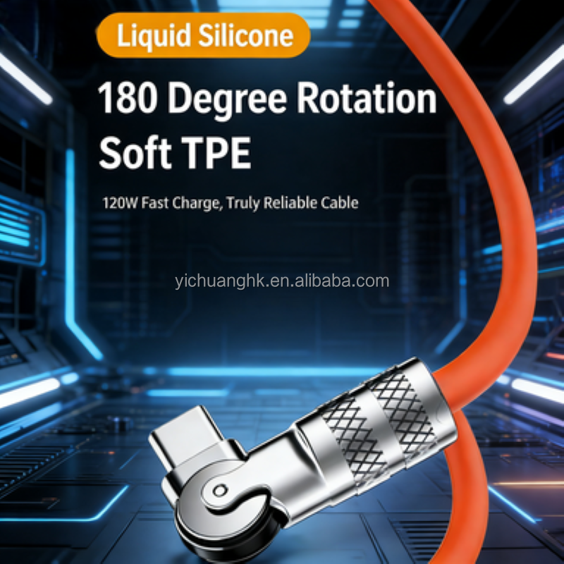 สายชาร์จเร็วแบบ USB3.0 Type-C กำลังไฟ 120W 5A หัวโลหะหมุนได้ 180 องศา ดีไซน์ข้อศอก ผลิตจาก PVC และทองแดงแท้ สำหรับโทรศัพท์มือถือ
