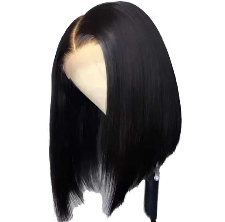 วิกผมบ๊อบตรงแบบหนาแน่น 180% พร้อมเชือกผูกผมแบบโปร่งใส 5x5 ทำจากผมแท้เวียดนามแบบ Virgin ถักแบบ Single Knot สีดำธรรมชาติ