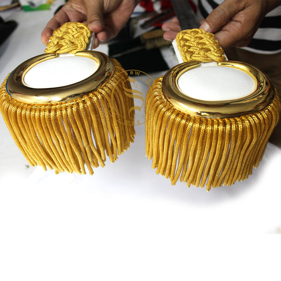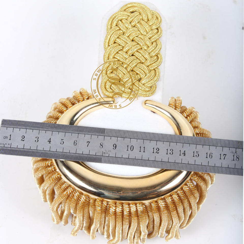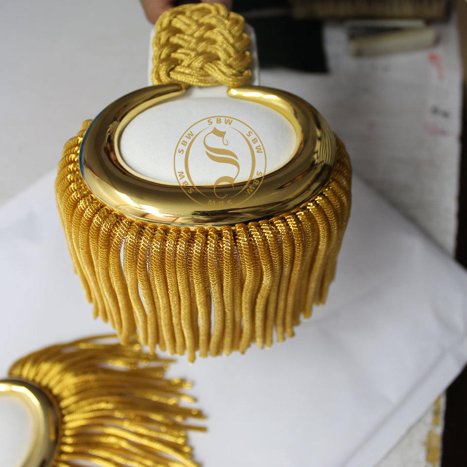 เครื่องประดับไหล่สำหรับวงโยธวาธิติย์ศตวรรษที่ 1800 แบบพิธีการ ประดับพู่สีทอง ระดับชั้นยศสั่งทำได้ ขายส่งเครื่องประดับไหล่