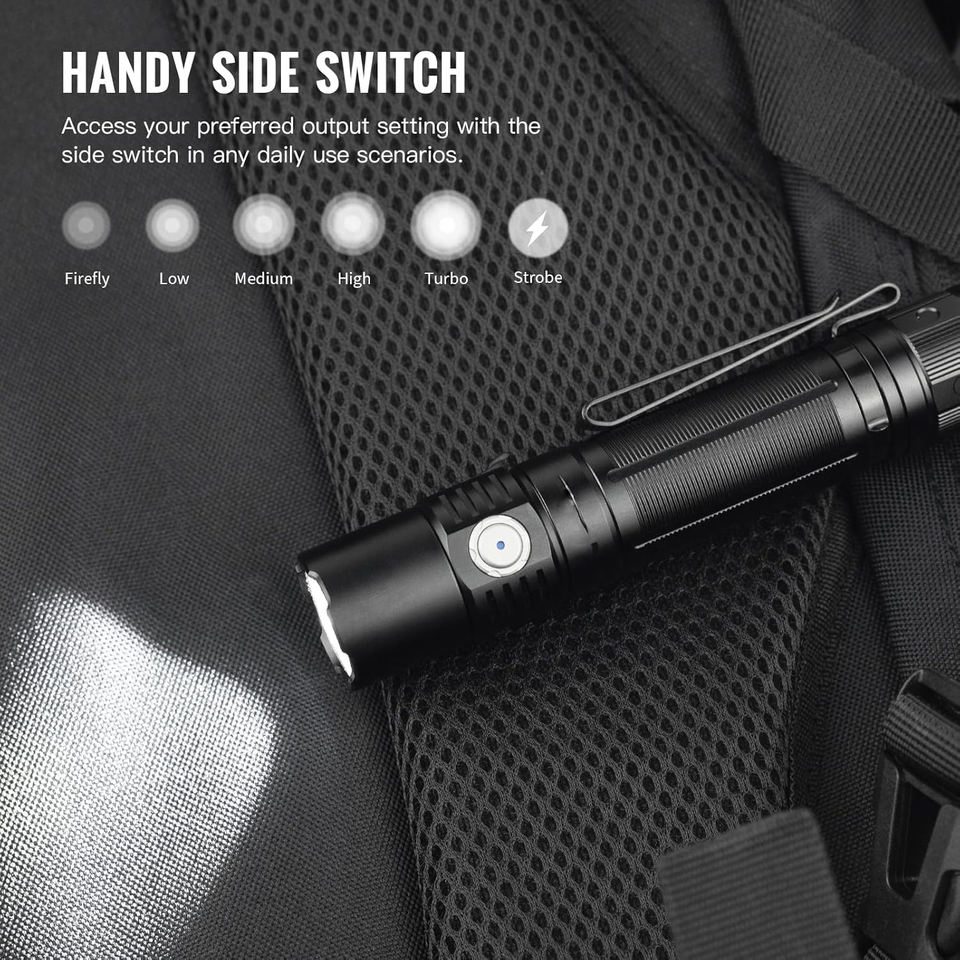 โหมด:ต่ำ-ปานกลาง-แข็งแรง-แสงจันทร์-แฟลช-SOS, ดับเบิลคลิกเทอร์โบ