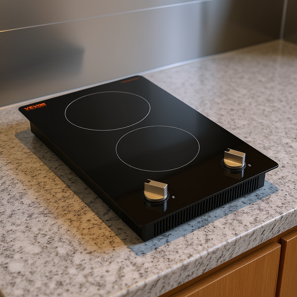 เตาแม่เหล็กไฟฟ้าแบบตั้งโต๊ะ Vevor 2 หัวเตา 1800 วัตต์ ควบคุมด้วยปุ่ม ปรับความร้อนได้ พกพาสะดวก หน้าเตาทำจากกระจก