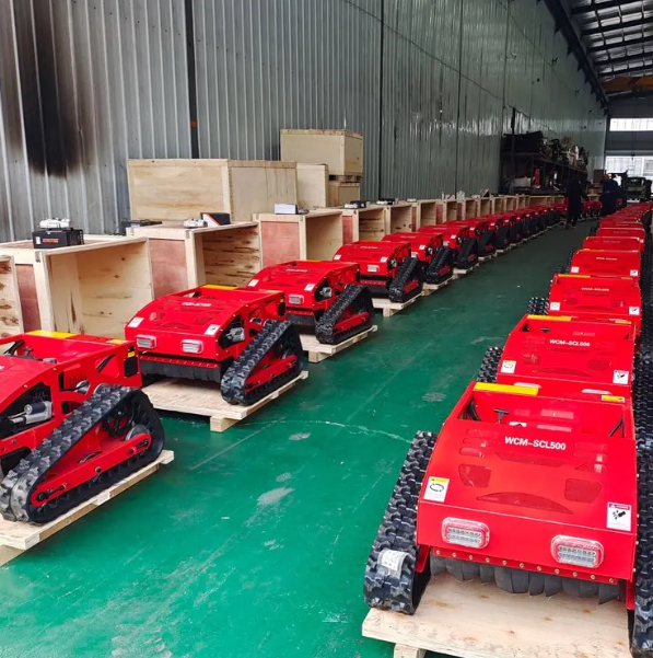 หุ่นยนต์ตัดหญ้าสำหรับการเกษตรทุกพื้นที่1800วัตต์รีโมทคอนโทรลที่จับแบบยืดหดได้1000มม. กล่องหญ้า196cc ได้สูงสุด