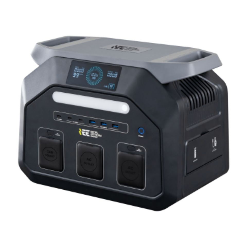 สถานีไฟฟ้าพกพา 1800W พร้อมแผงโซลาร์เซลล์ แบตเตอรี่ชนิด LiFePO4 สีดำ อะแดปเตอร์ AC อินเวอร์เตอร์ สำหรับใช้งานกลางแจ้ง ตั้งแคมป์ รถยนต์ และในบ้าน สีดำ