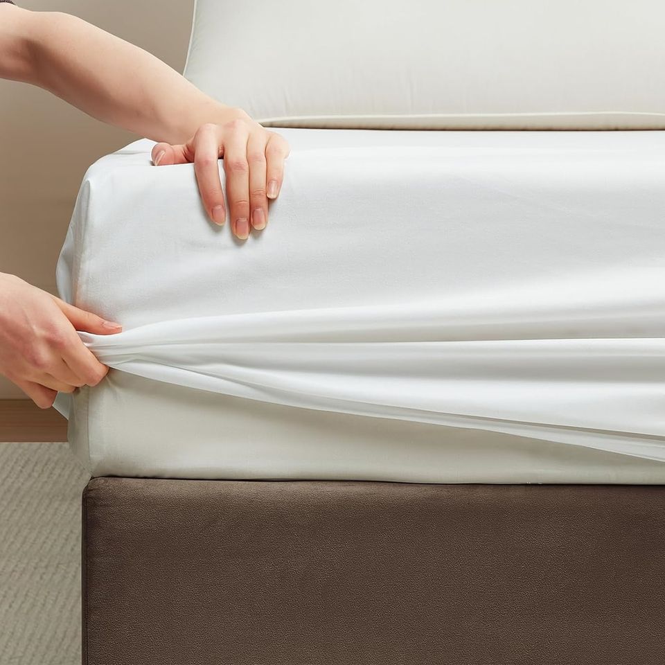 ผ้าปูที่นอนรัดมุมสีขาว ผ้าฝ้าย 100% 180 เส้นด้าย สำหรับใช้ในบ้าน