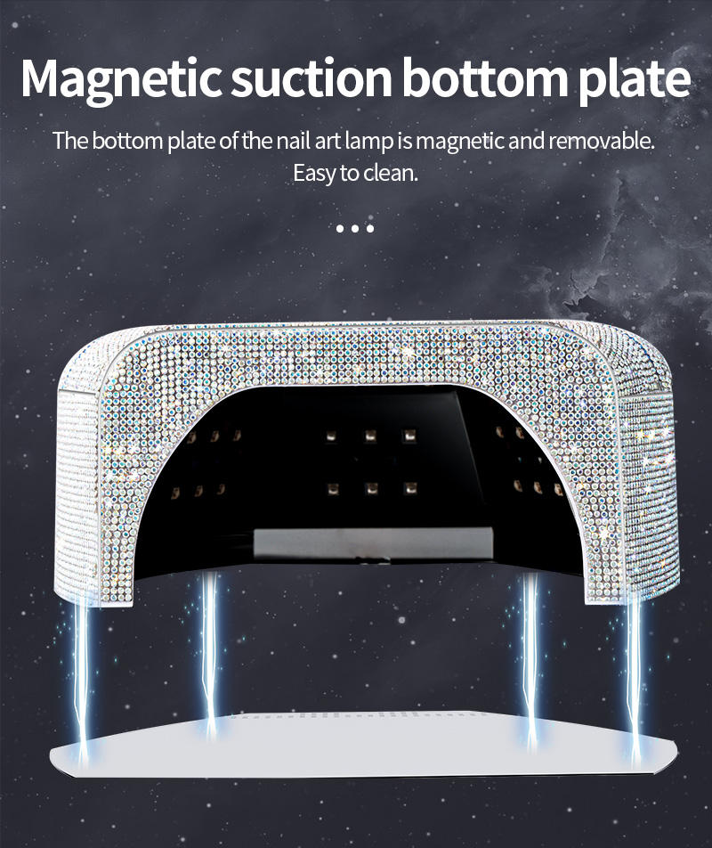 โคมไฟยูวี LED 180W สำหรับมืออาชีพเครื่องเป่าเล็บพร้อมแผ่นแม่เหล็กดีไซน์เพชรสุดหรูสำหรับร้านเสริมสวย/บ้านเจลขัดเงาบ่ม
