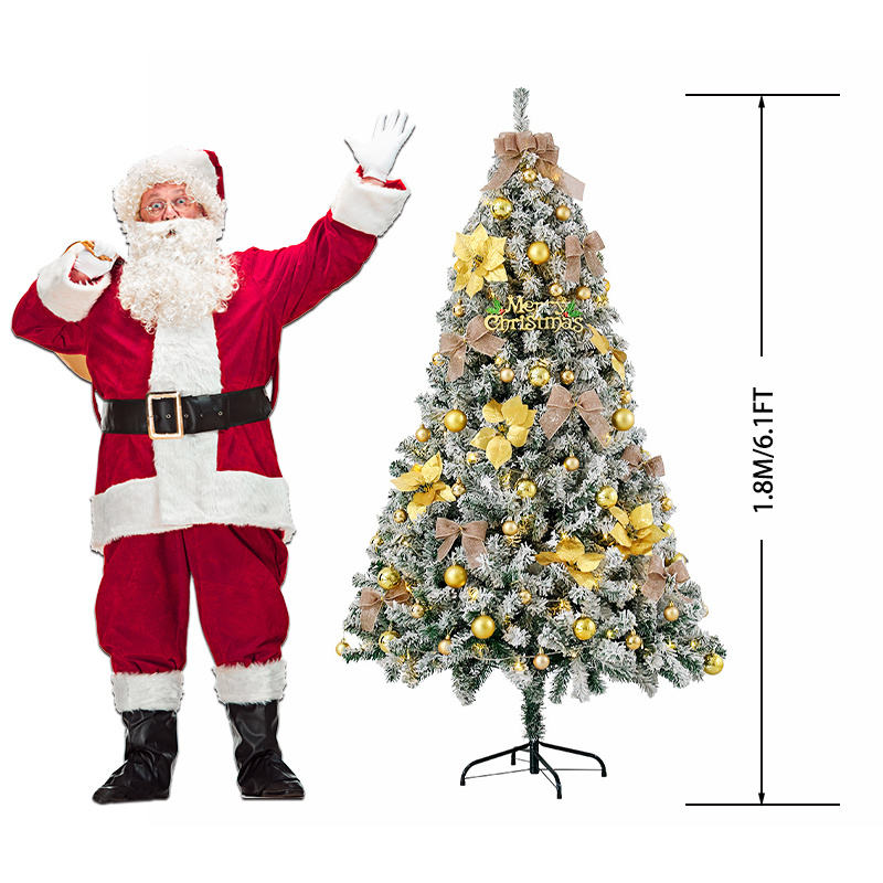 ต้นคริสต์มาสประดิษฐ์แบบมีบานพับ ขนาด 180 ซม. ตกแต่งด้วยหิมะ ต้นสนพร้อมขาตั้งโลหะแข็งแรง ใช้ได้ทั้งภายในและภายนอกอาคาร ขนาด 6 ฟุต