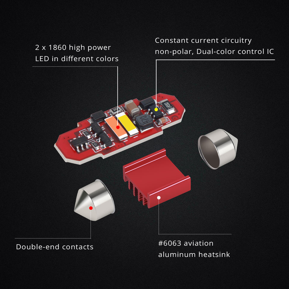 หลอดไฟ LED หลากสีแบบคู่1860 2SMD สวิตช์แบ็คสีขาว/แดง31มม. สำหรับแผนที่โดมประตูลำตัวไฟประดับขั้นบันได