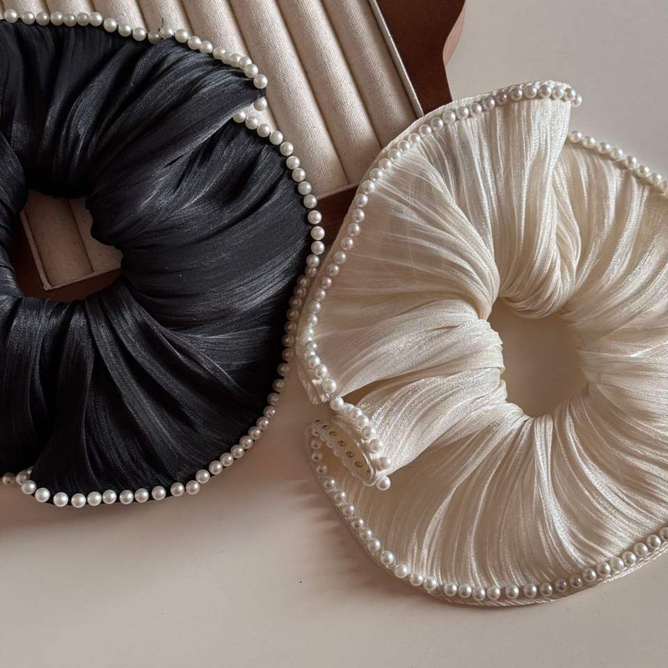 กิ๊บติดผมผ้าไหมประดับมุกขนาด 18 ซม. สำหรับผู้หญิง สไตล์ฝรั่งเศส แฟชั่นทันสมัย ยางรัดผม ที่คาดผม เครื่องประดับผม