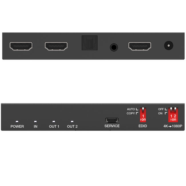 18Gbps 1X2 HDMI Splitter พร้อมด้วยเครื่องแยกสัญญาณเสียงเครื่องแยกสัญญาณเสียง HDMI SPDIF Optical RCA