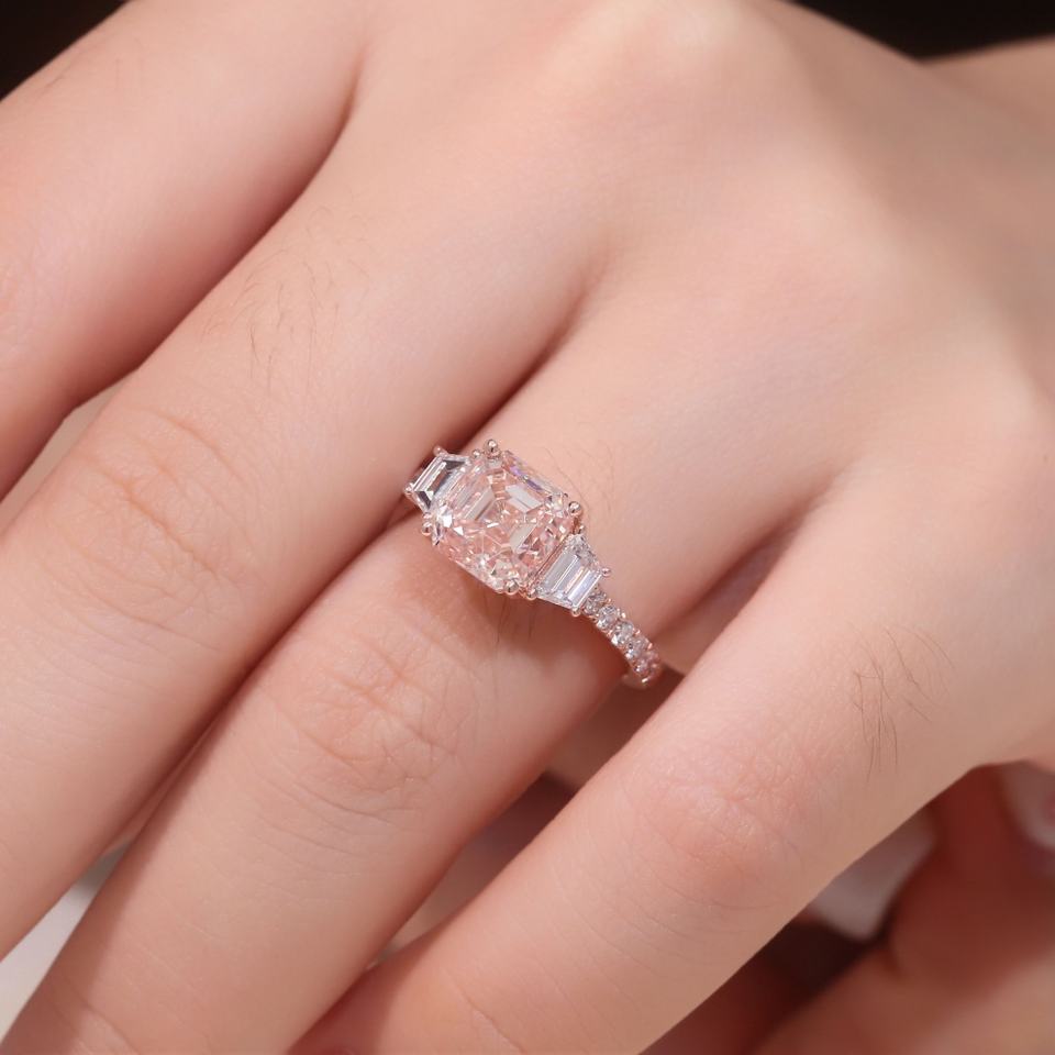 หิน:เพชรโมอิสซาไนต์ สีชมพู / ความสะอาดระดับ VVS1 / การเจียระไนยอดเยี่ยม