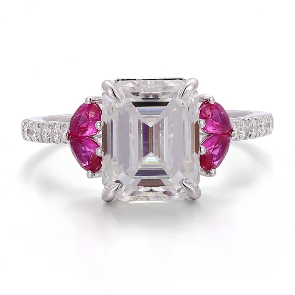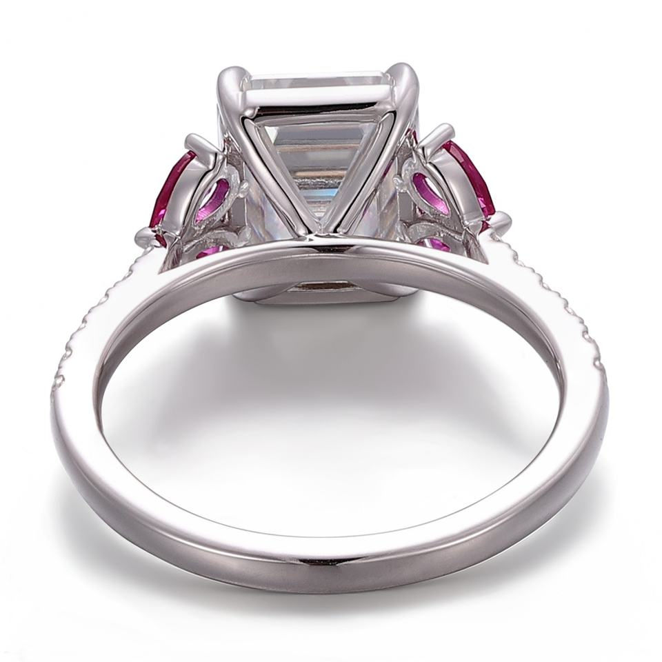 แหวนทองคำขาวแท้ 18K 14K 10K ประดับมรกต มอยส์ซาไนต์ และพลอยสีชมพู แหวนแฟชั่นดีไซน์เนอร์สำหรับสุภาพสตรีสำหรับงานปาร์ตี้