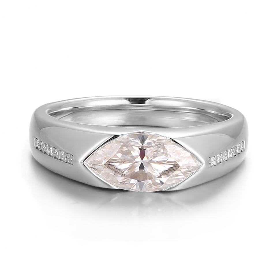 แหวนทองคำขาวแท้ 18K 14K 10K ทรงมาร์คีส์ ประดับเพชรโมอิสซาไนต์ DEF VVS เครื่องประดับแฟชั่นสำหรับเป็นของขวัญคริสต์มาส ผู้หญิง ผู้ชาย สวมใส่ได้ทุกวัน