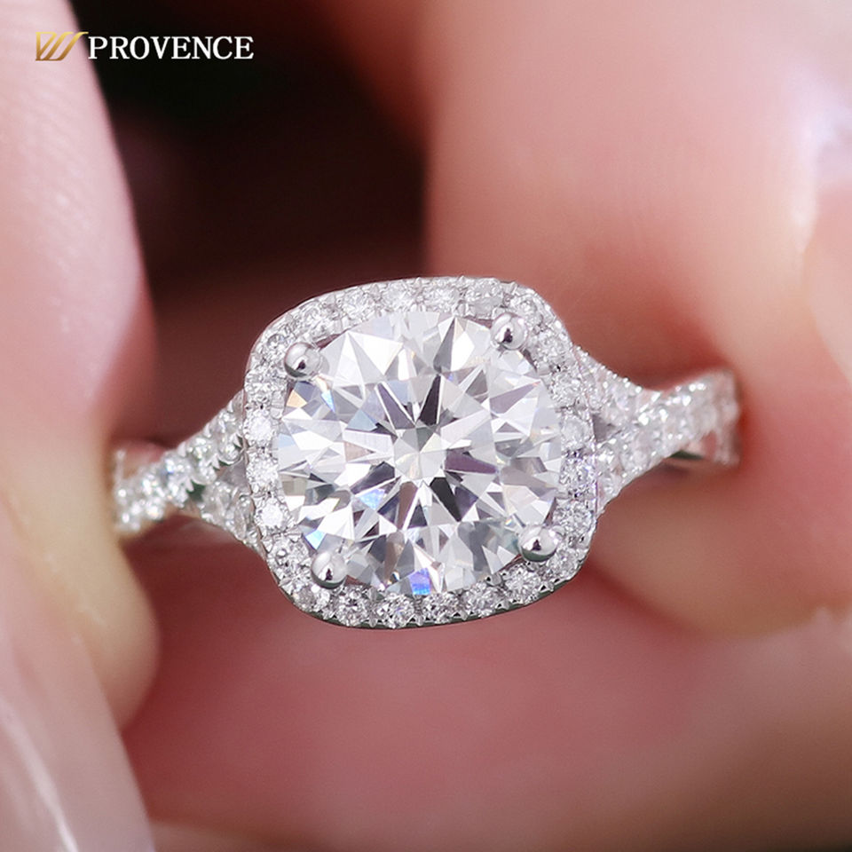 แหวนทองคำขาวแท้ 18K 14K 10K ประดับเพชรโมอิสซาไนต์ทรงกลม D VVS เครื่องประดับชั้นดี แหวนทำมือสั่งทำพิเศษสำหรับงานปาร์ตี้ งานหมั้น งานแต่งงาน