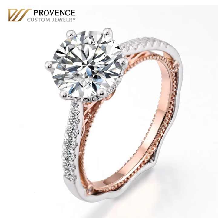 แหวนดีไซน์เนอร์ทอง 18K 14K สไตล์โดดเด่น แหวนเพชรโมอิสซาไนต์ทรงกลมเจียระไนแบบบริลเลียนท์ เกรด GRA DEF เครื่องประดับคุณภาพจากโรงงาน แหวนแต่งงานสำหรับผู้หญิง