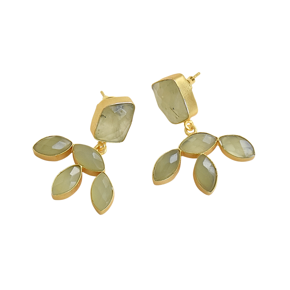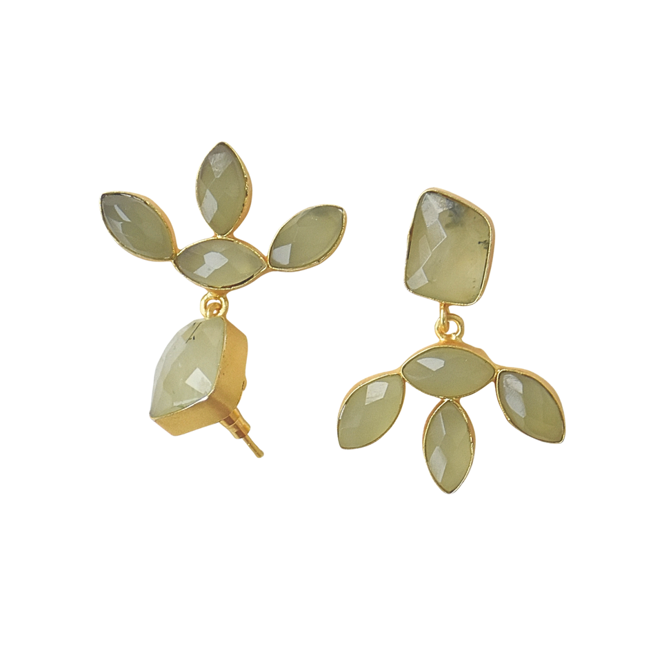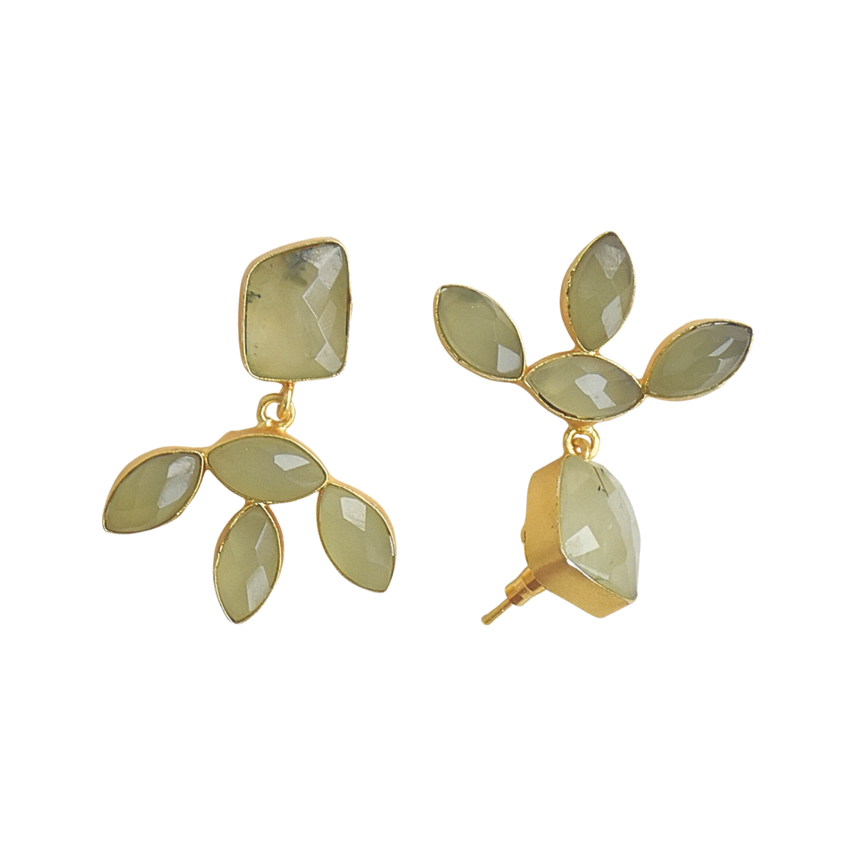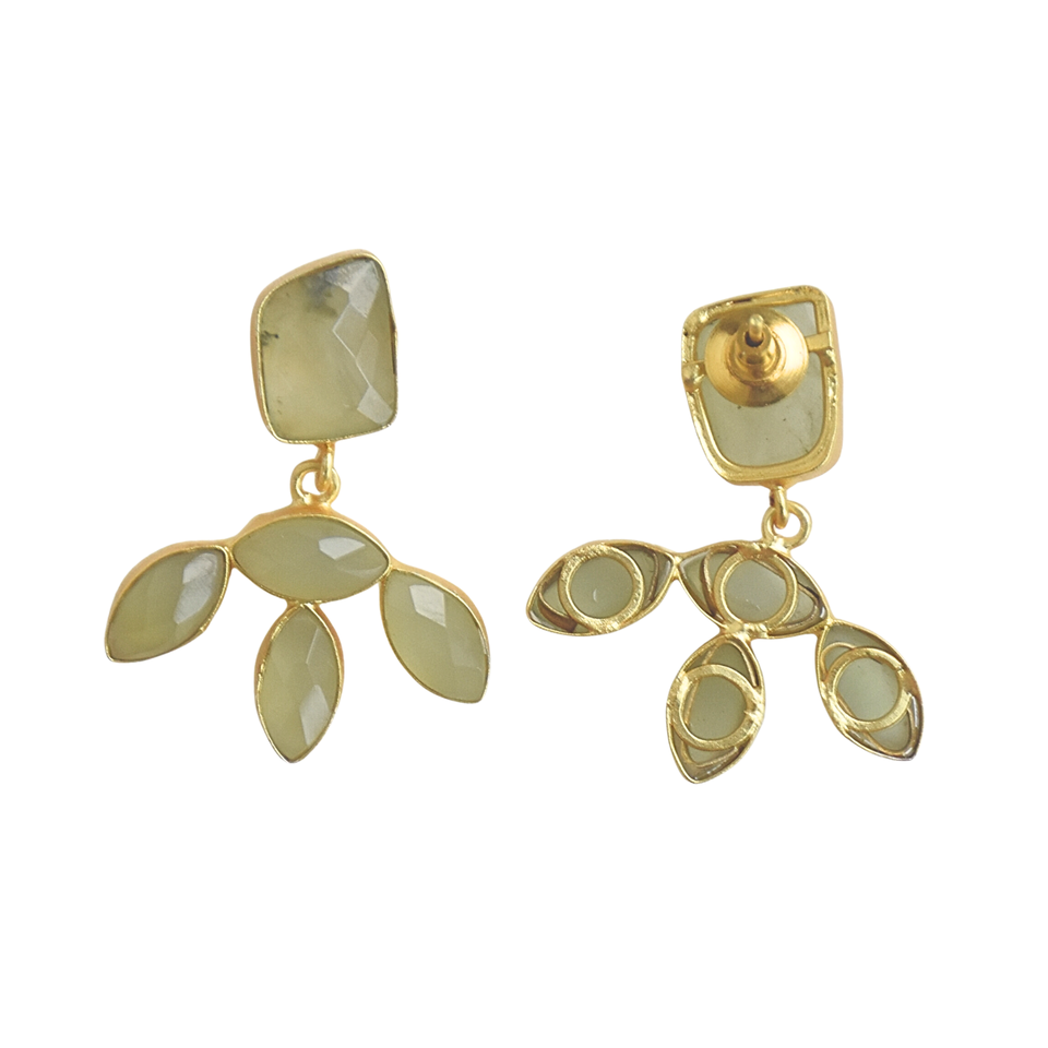 ต่างหูแบบห้อยประดับมุกน้ำจืด พรีไนต์ และแคลเซโดนี ชุบทอง 18K/14K รูปทรงผีเสื้อ สำหรับวันครบรอบ