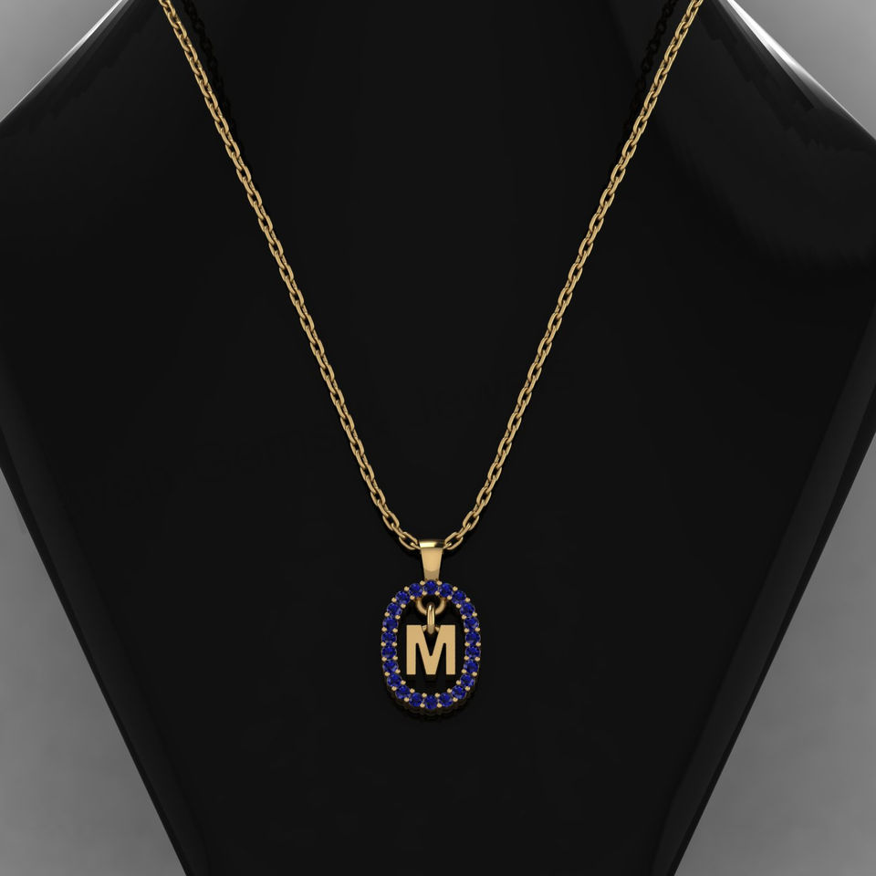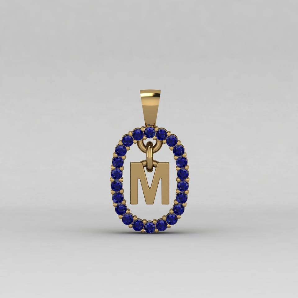 จี้ห้อยรูปตัวอักษร M ประดับด้วยพลอยควอตซ์สีน้ำเงินขนาด 17x12 มม. ทำจากเงินแท้ 925 ชุบทอง 18K ดีไซน์ทันสมัยสำหรับผู้หญิง