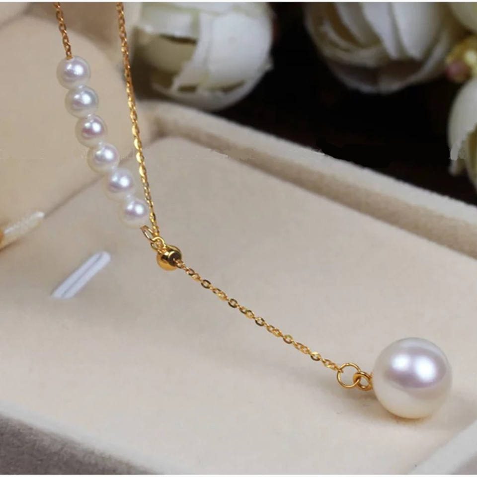 สร้อยคอไข่มุกน้ำจืด 8-9 มม. 3-4 มม. แบบปรับได้ ทอง 18K สไตล์ใหม่ ผู้ผลิตขายส่งแบบดรอปชิป